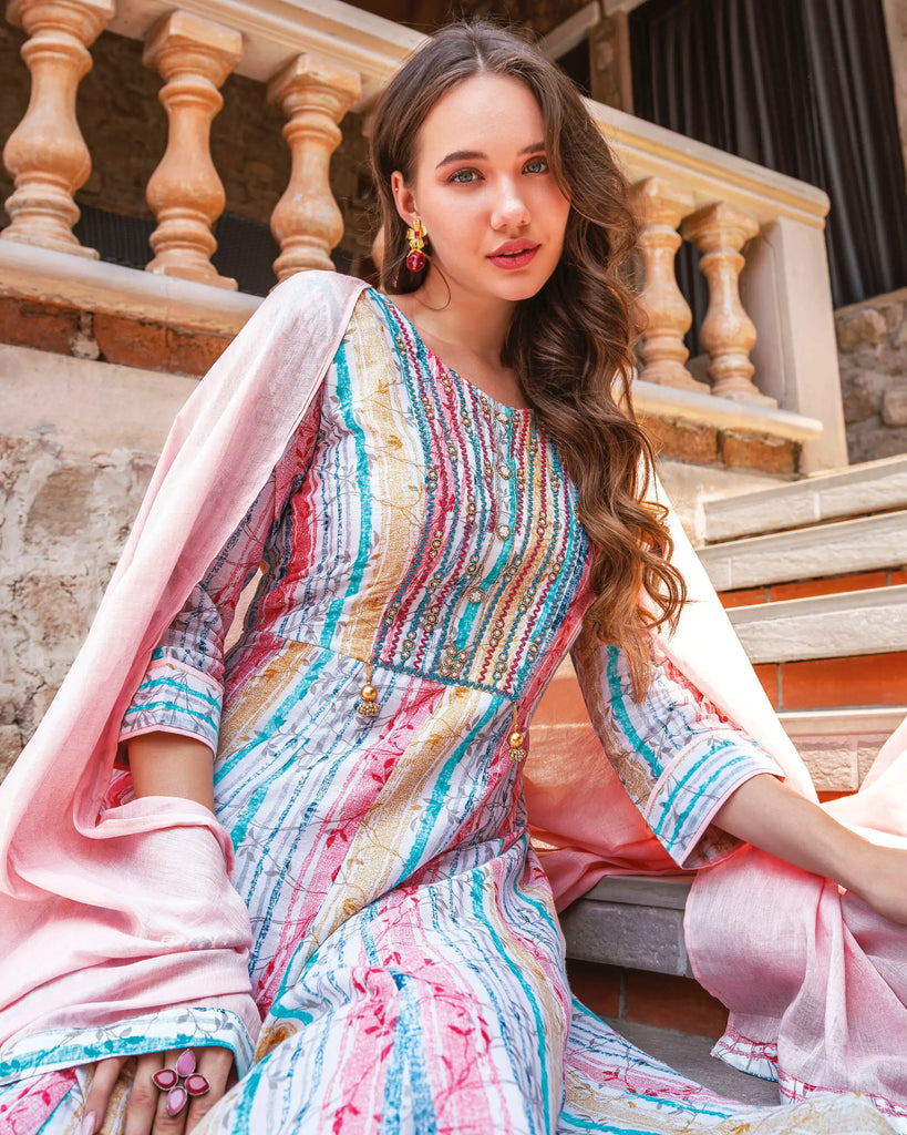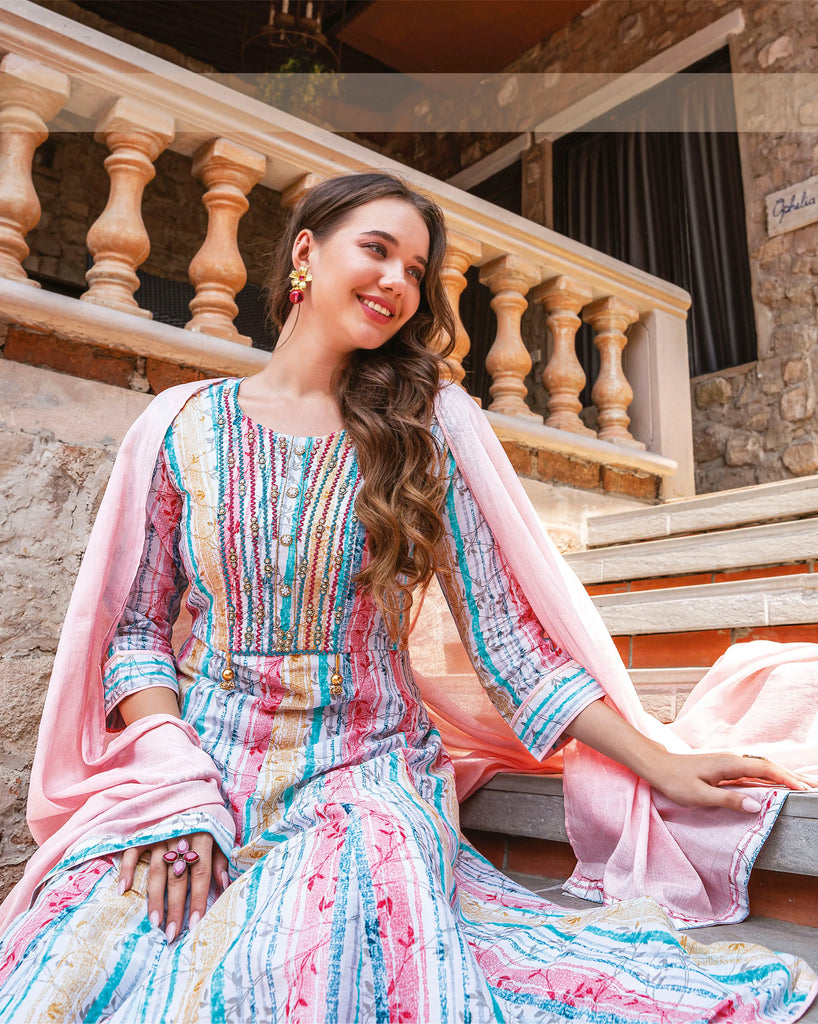 Completing the ensemble is the dupatta, crafted from luxurious Mul cotton. The delicate embroidery on the dupatta adds a touch of sophistication, enhancing the overall appeal of the outfit. SilaiHouse's Pure Cotton Ethnic Ensemble is perfect for festive celebrations, casual gatherings, and special occasions. Available in a variety of sizes, it promises a perfect fit for every woman, allowing you to showcase your elegance and grace effortlessly. Embrace the beauty of traditional craftsmanship with this exclusive ensemble from SilaiHouse.