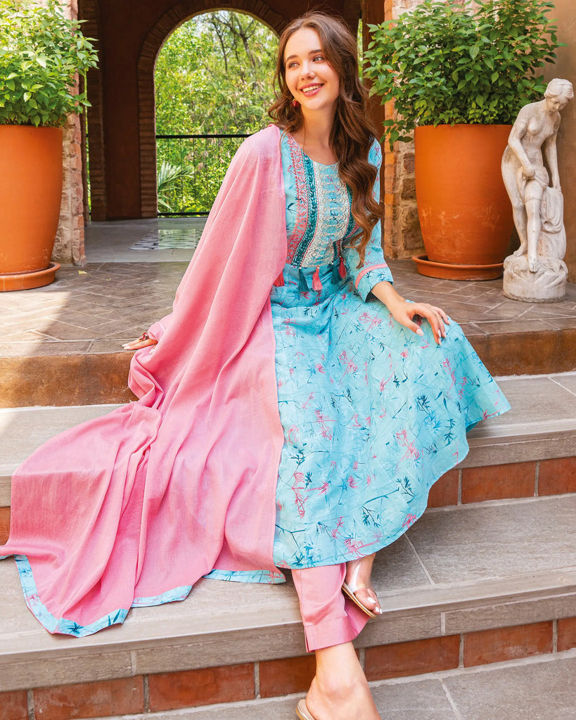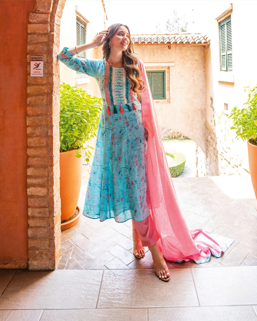 Elevate your ethnic wardrobe with our Pure Cotton Ethnic Ensemble. The top, crafted from premium pure cotton, features exquisite embroidery, offering both comfort and elegance. The pure cotton bottom complements the top perfectly, ensuring a light and breathable feel ideal for any occasion.