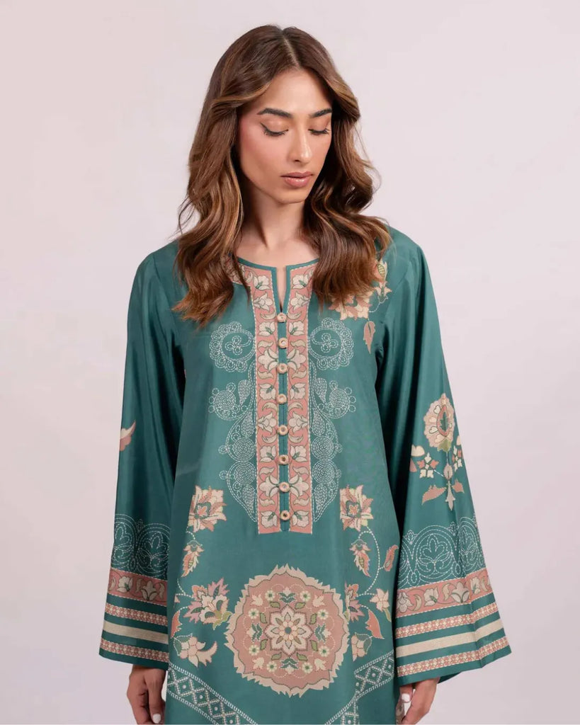 A flowing silhouette and wide sleeves create a fluid, ethereal drape, while side slits add effortless movement. The kaftan is finished with a museum-worthy notched neckline and covered button placket, ensuring comfort with sophisticated detail. Thoughtfully designed for memorable gatherings, leisurely afternoons, or evenings out—just add sculptural accessories and heels to let the garden story shine. The Eden Sarai Kaftan is your new favorite signature for elevated, East-meets-West style.