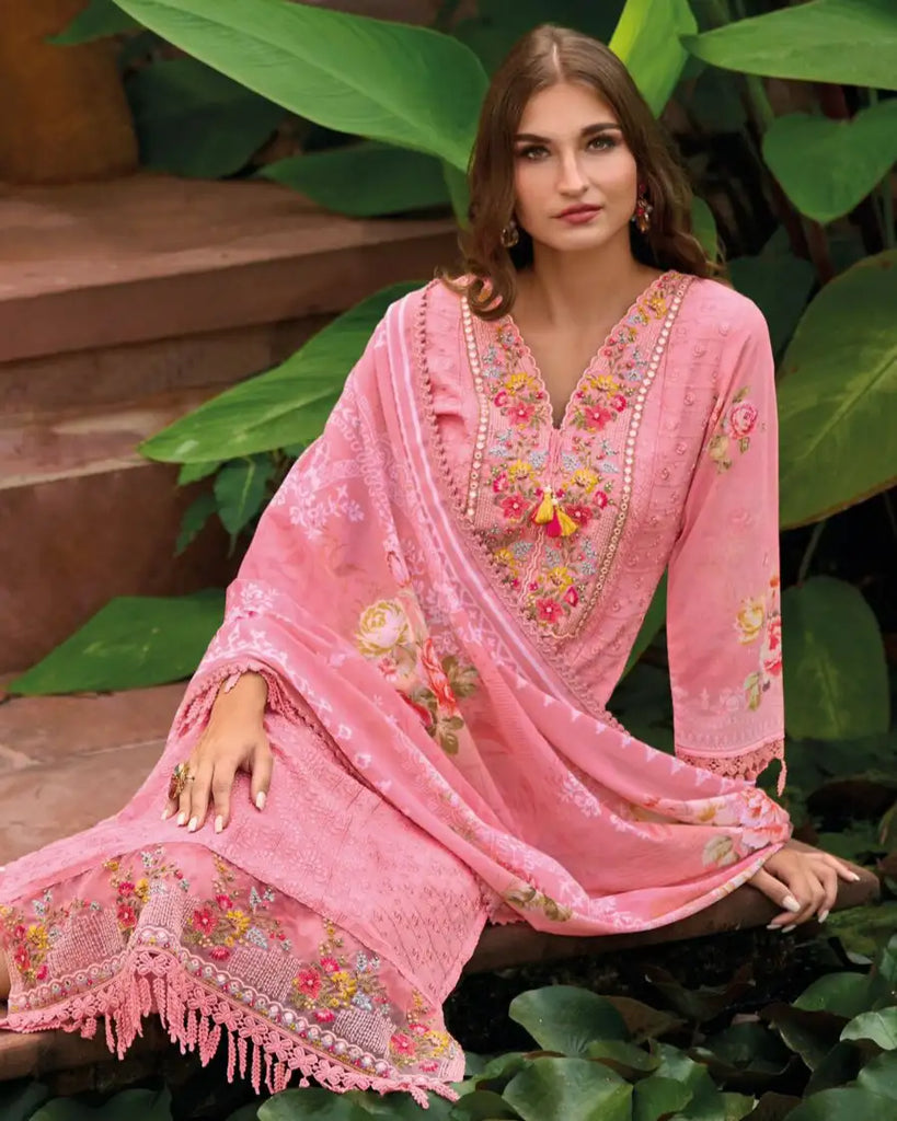 The Pure Designer Digital Print Sleeves adorned with delicate laces enhance the Kurti's sophistication. Complementing the Kurti, the Fancy Bottom in Pure Muslin offers a seamless blend of comfort and style. The ensemble is completed with a Pure Chinon Chiffon Dupatta featuring elegant scalping work and fancy muslin detailing, adding a luxurious finish to the outfit.