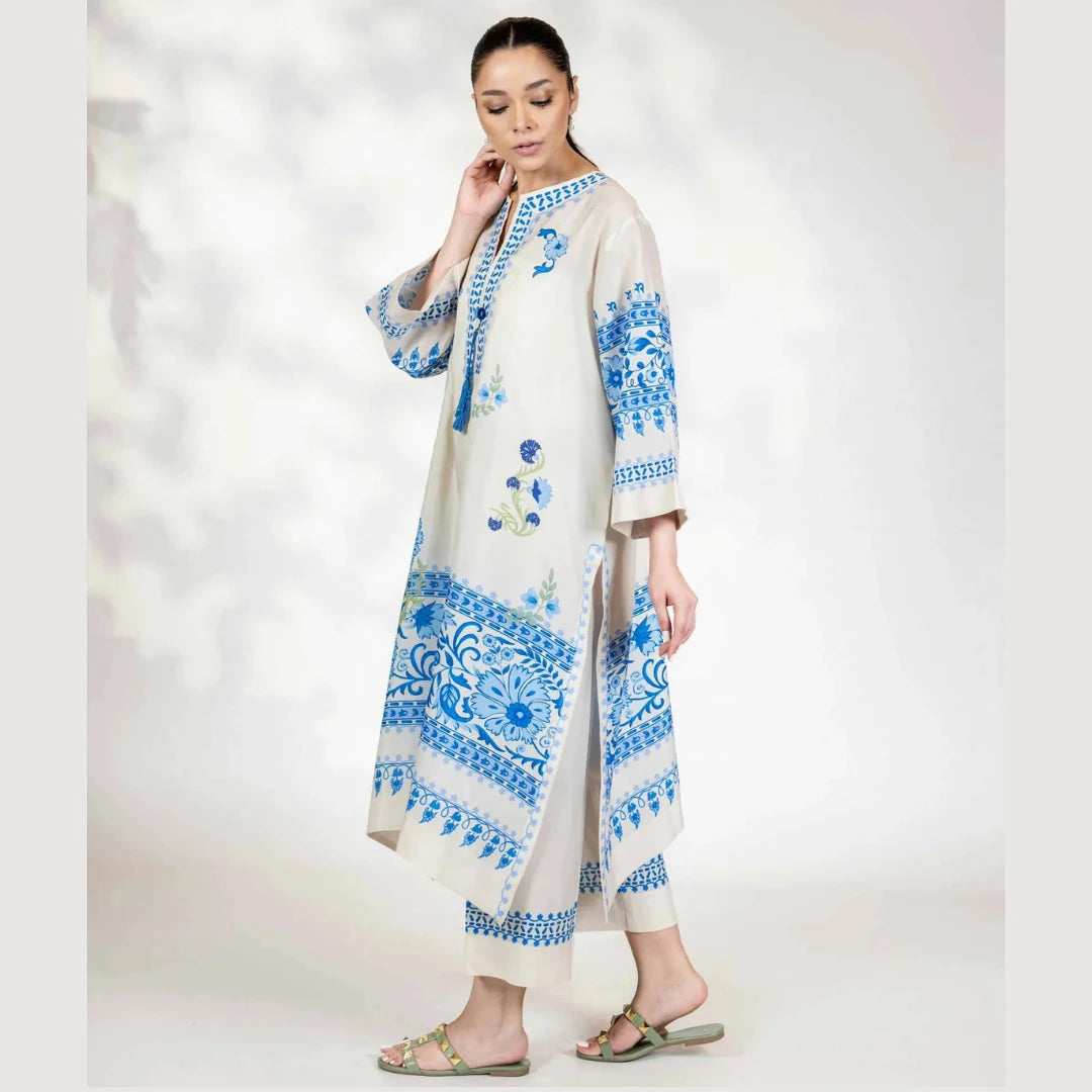 Ivory & Blue Blooms Coord Set.