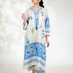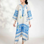 Brighten your day with our Orielle Co-Ord Set, designed to capture the effortless charm of bright days. The set features cool ivory fabric adorned with vibrant blue floral block prints and delicate leafy accents, delivering a fresh and uplifting look for any occasion.