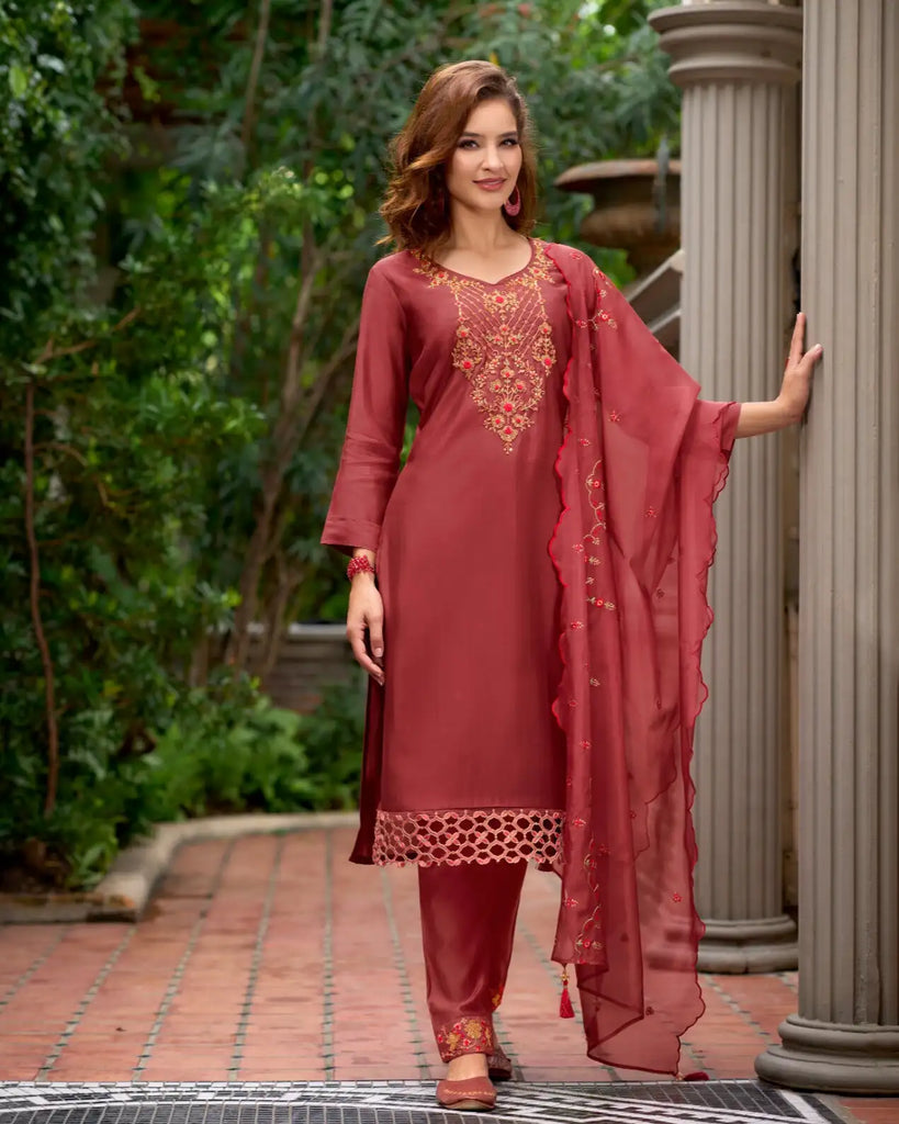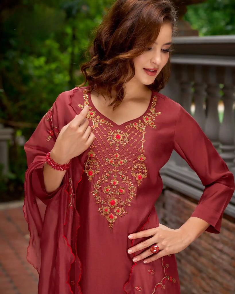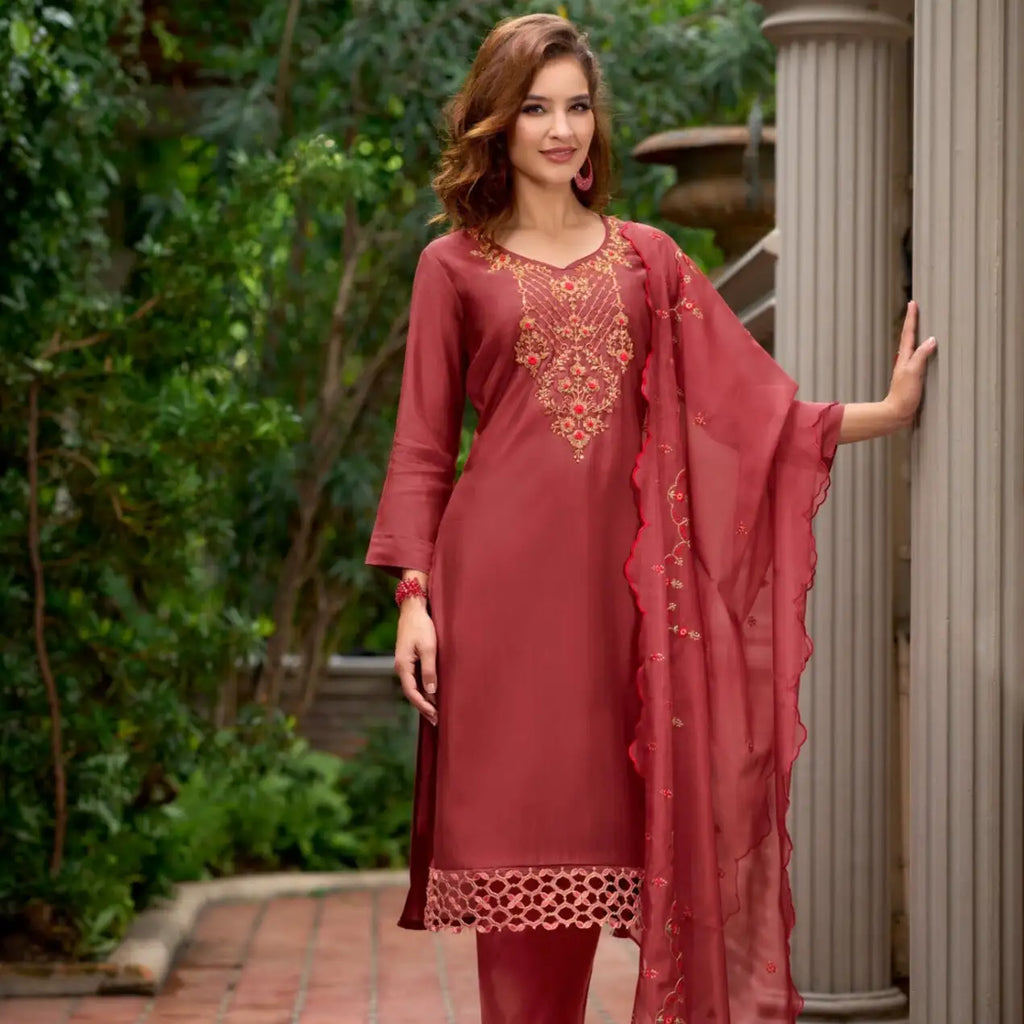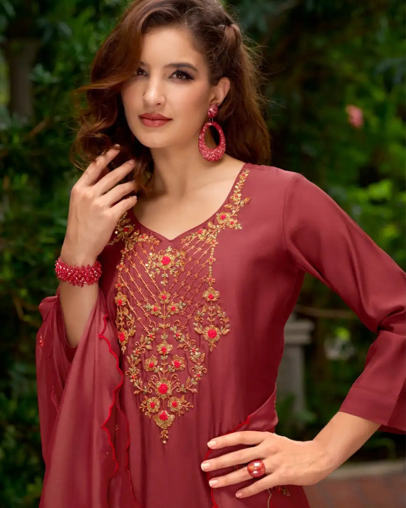 Immerse yourself in the essence of timeless elegance with SilaiHouse's Ethnic Ensemble. Crafted with meticulous attention to detail, the Milan silk top features exquisite full handwork, enveloping you in luxurious comfort with its soft cotton inner.